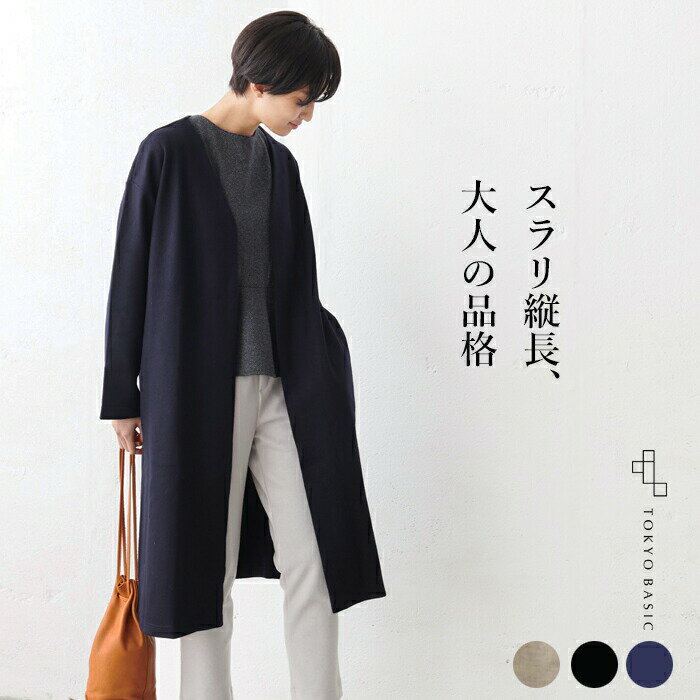 ゆったりしたシルエットで下にスーツを着ても安心な上、シンプルなデザインが体型をスッキリと見せてくれます。